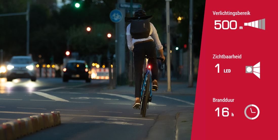 SIGMA® INFINITY NEVERENDING POWER STIJLVOL USB ACHTERLICHT VOOR ALLE SITUATIES Dankzij zijn bijna oneindige energie en een uiterst stijlvolle look, is het achterlicht SIGMA® INFINITY met extra lange brandduur van maximaal 16 uur een perfecte metgezel voor sportieve ritten in het donker op de racefiets, gravelbike of MTB. Het extreem slanke USB achterlicht beschikt over het RAI Keurmerk Fietsverlichting (RKF), de Duitse een StVZO wettelijke goedkeuring en zorg ervoor dat de achterkant van je zadelpenbuis er gegarandeerd beter uit ziet. TOT OP 500 METER ZICHTBAAR Vrijwel onverslaanbaar is het uithoudingsvermogen van de kleine energiebundel: met een brandduur van 16 uur en een zichtbaarheid van 500 meter begeleidt de SIGMA® INFINITY je langdurig en betrouwbaar op je routes en zorgt voor veiligheid in het verkeer of tijdens een nachtrit met je vrienden. SPORTIEF ONTWERP Het SIGMA® INFINITY achterlicht heeft niet alleen oneindig veel kracht, Door de montage parallel aan de zadelpen past het compacte achterlicht zo sportief-elegant in het totaalbeeld van jouw fiets.maar ziet er ook heel goed uit. Met een gewicht van slechts 25 g (inclusief houder) en haar geringe lengte van 48 mm kan het SIGMA® INFINITY achterlicht ook probleemloos in de broekzak worden gestopt. VEILIGHEID DOOR EEN GOEDE ZICHTBAARHEID VANAF DE ZIJKANT Het accugevoede achterlicht verlicht in een hoek van 240°, zodat je ook vanaf de zijkant voor andere verkeersdeelnemers goed zichtbaar bent en je jezelf veilig kunt voelen in het verkeer. OPLAADBAAR De SIGMA® INFINITY is voorzien van een geïntegreerde accu. Deze wordt via de Micro-USB aansluiting opgeladen, hetgeen ook op elke PC/laptop mogelijk is. Met de meegeleverde Micro-USB-kabel is het achterlicht in iets minder dan twee uur weer volledig opgeladen. Dat bespaart geld en is goed voor het milieu. ACCU-INDICATOR EN LAADINDICATOR De SIGMA® INFINITY beschikt over een tweetraps accu- en laadindicator. Onder 70 procent van de accucapaciteit brandt de led naast de bedieningsknop groen, onder de 10 procent rood het achterlicht moet dan worden opgeladen. Tijdens het opladen brandt de indicator rood. Zodra de accu vol is, brandt de indicator groen. SPATWATERDICHT Het achterlicht SIGMA® INFINITY is spatwaterdicht volgens de internationale IPX4-norm en daarmee ook optimaal geschikt voor slechte weersomstandigheden. MONTAGE ZONDER GEREEDSCHAP Met de meegeleverde siliconenband kan de SIGMA® INFINITY snel en zonder gereedschap op alle gangbare zadelpennen worden bevestigd en kan zo op de meest uiteenlopende soorten fietsen worden gebruikt.
