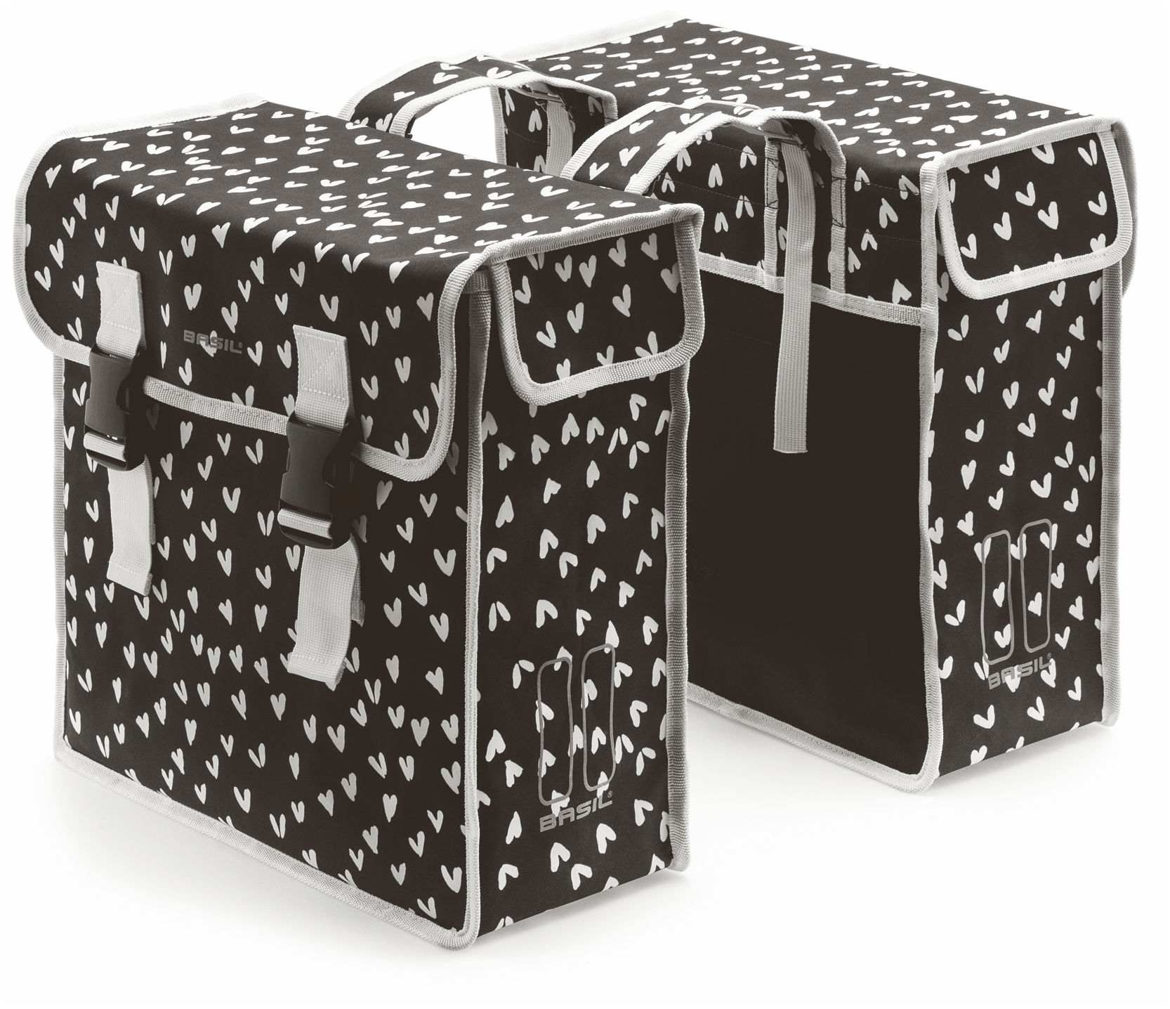 De Basil Mara XL Double Bag is een dubbele fietstas in een heart dots kleur voor achterop de fiets. Deze stijlvolle fietstassen zijn geschikt voor zowel dames- als herenfietsen.