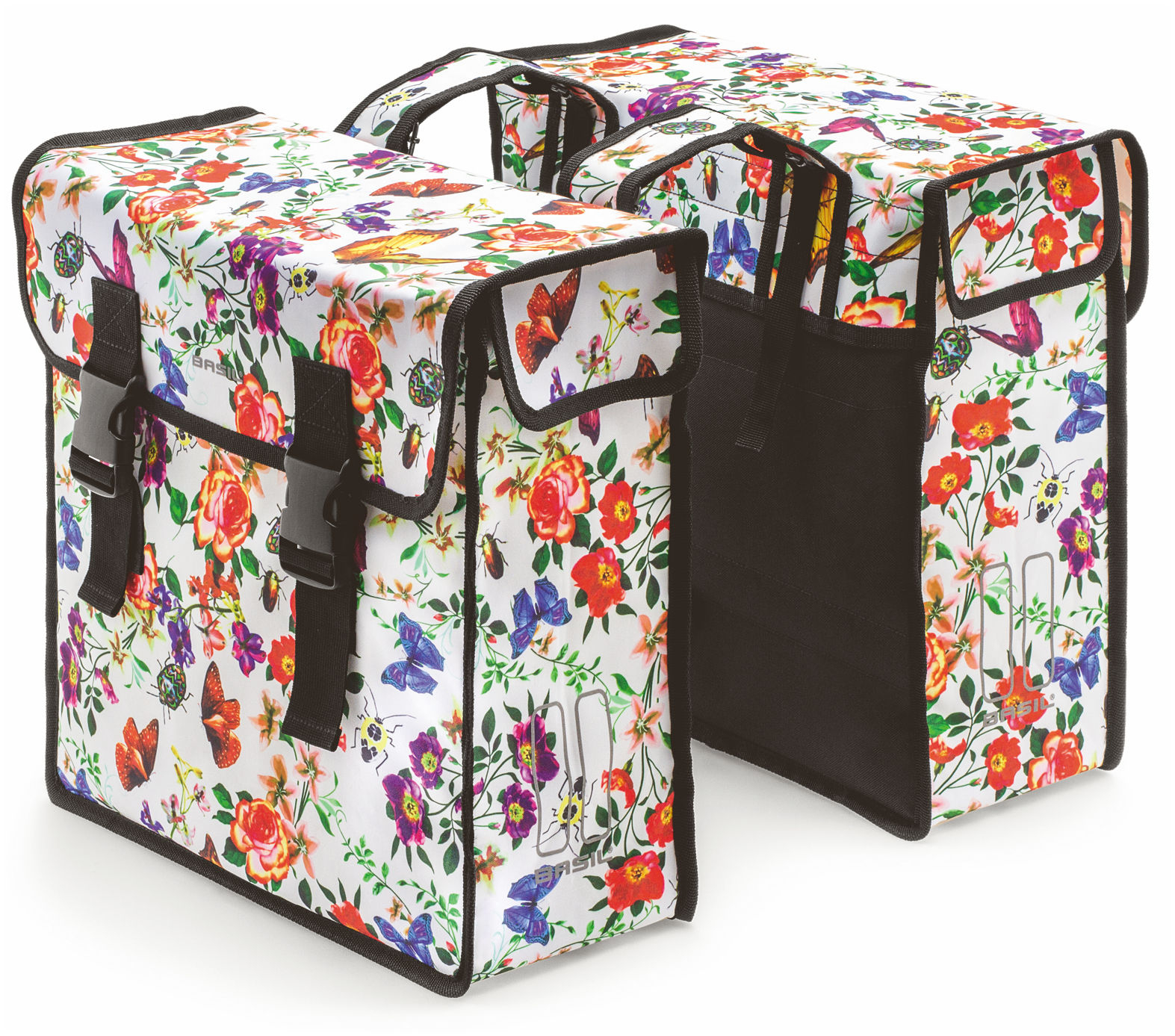 De Basil Mara XL Double Bag is een stijlvolle dubbele fietstas voor achterop een dames- of herenfiets. Deze multicolor fietstassen zijn ook uitstekend geschikt voor een e-bike. Zet je je in voor het milieu en ga je daarom liever met de fiets naar de supermarkt dan met de auto? Dan is deze dubbele fietstas een interessante aankoop. Dankzij de extra grote inhoud van 35 liter is hij ideaal om al je boodschappen in op te bergen. De dubbele fietstas is ook een uitkomst als je in het weekend graag lange fietstochten maakt en een hele dag onderweg bent. Zowel je regenpak, bandenplakset als lunchpakket zijn dan veilig op te bergen. De Basil Mara XL is gemaakt van waterafstotend polyester, waardoor de inhoud van je tassen niet snel nat wordt. Wel zo handig. Je sluit de tas af met behulp van kliksluitingen en je bevestigt de fietstassen met riempjes aan de bagagedrager van je fiets. Aan de bovenzijde van de tassen vind je twee banden ten behoeve van bijvoorbeeld ledverlichting, een snelbinder, kinderzitje of veerklem. De dubbele reflectiestrepen op alle zijkanten garanderen jouw zichtbaarheid in het verkeer. Eigenschappen: